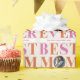 Perfeito para embrulhar presentes do dia das mães, este papel de presente personalizado apresenta a frase "melhor mãe do mundo" em lilás roxo brilhante e primaveril, azul ovo de robin, amarelo solar, verde grama e rosa bonito e mantém sua mãe no centro das atenções com uma foto e mensagem editável e texto com o nome abaixo dela. Se ela não desembrulhava cuidadosamente os presentes antes para salvar o papel, agora vai!