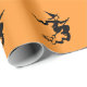 Festa de Dia das Bruxas de laranja e preto embrulhando papel com bruxa sobre vassoura. Adicione seu próprio texto personalizado.