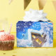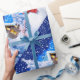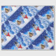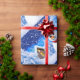 Papel de embrulho de natal. Bonito bonitão de neve num cenário mágico de inverno de neve.