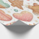 Adorado com figuras deliciosas de pão de gengibre, este papel de embrulho cômico captura a magia da época de férias. Apresenta uma série de designs alegres, incluindo gengibres, doces, e árvores de Natal decoradas, todos colocados contra um pano de fundo macio e festivo.