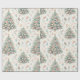 Este papel colorido de embrulho de Natal apresenta lindamente enfeitadas árvores verdes e enfeitadas, enfeitadas com ornamentos, flores e decorações de férias, perfeitas para dar presente.