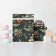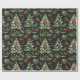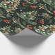 Um delicioso papel de embrulho de Natal, com árvores vibrantes, bagas vermelhas, e um verde esmagador sobre um fundo escuro, perfeito para adicionar alegria a experiências de Natal que dão presentes.