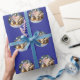 Papel de molhador de pássaro. Este belo rolo de papel de embrulho tem um fundo azul com ornamentos de ouro e 2 beija-flores e criava de fotos tiradas por Audrey Wenzler da Audrey's Creations.