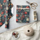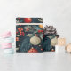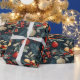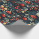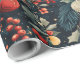 Um design rico e colorido apresenta ornamentos, sagrados e bagas contra fundo escuro, perfeito para envolver presentes e espalhar alegria de férias durante a estação festiva.