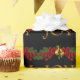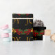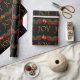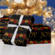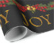 Belos ramos de abeto vermelhos e verdes com bagas vermelhas e peras, papel de embrulho de Natal Joy vermelho e dobrado. Você pode adicionar texto e alterar a cor do fundo para personalizar este papel de presente de Natal preto e dourado elegante.