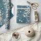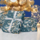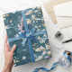 Apreciação no espírito festivo com este belo papel de embrulho de Natal, com padrões de ouro e branco intrincados sobre fundo azul profundo, perfeito para presentes de Natal.