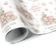 Papel de enrolamento de Natal bonito, em rosa suave, bege e verde, com o ursinho de pelúcia mais bonito, árvore de Natal e texto personalizado. Personalize facilmente o texto. - Kate Eden Art