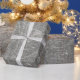 Milhares de flocos de neve são médio-ar congelado enquanto caem diante de árvores escuras e indistintas nesta cena de inverno. Uma árvore estéril fica mais em primeiro plano com neve nos seus ramos. Fotografia digital a cores. Copyright © 2013 Claire E. Skinner. Todos os direitos reservados.