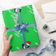 Papel de embrulho de pinguim de Natal | Personalizável. Um desenho animado de pinguim com o chapéu de Papai Noel e saudações de Natal personalizadas. Feliz Natal! Design de presente bonito para crianças e adultos. Cor de fundo verde ou personalizada.