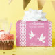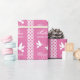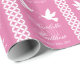 Papel de presente de casamento simples com duas pombas da paz brancas e duas fitas rosa. Personalize com os nomes e a data do casamento do casal. Desenhado exclusivamente por Sarah Trett.