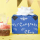 Presente de graduação na faculdade de direito e presente do partido formando apresentando escalas de justiça em fundo azul. Editar texto para adicionar o nome do formando.