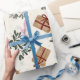 Feriados da temporada de papel de enrolar com flocos de neve tradicionais de desenho de presentes e galhos