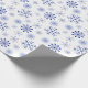 papel de embrulho de presente de natal com flocos de neve brancos e azuis