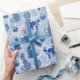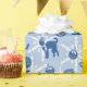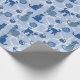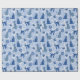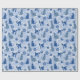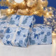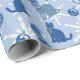 Presente embrulhando papel com gatos vestindo lenços de inverno em tons azuis.