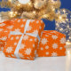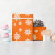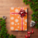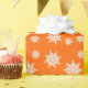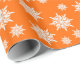 Cristais de gelo de inverno em plástico laranja brilhante, de alta qualidade. Vem num rolo, este papel de embrulho pesado tem um floco de neve branco, padrão de cristal de gelo.