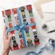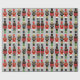 Este papel de embrulho de Natal festivo mostra três malucos pretos em sua postura de soldado em um fundo de cinza de prata. Suas cores vermelha, verde, dourada e preta são perfeitas para a temporada de festas para envolver presentes e presentes. Ele dá o tom para o decoro perfeito de férias.