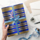 Lindo papel de embrulho personalizado azul real e dourado para o Natal, festa de aniversário e festa de Natal. Você pode personalizar com a sua escolha de texto na cor e estilo de fonte de sua escolha!