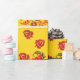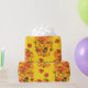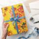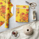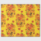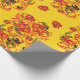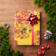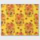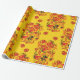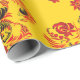 Hohloma russo papel de embalagem, arte russa, morangos vermelhos, folhas amarelas, fundo preto