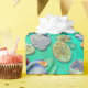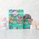bolos, doces e chá com outras comidas deliciosas em um fundo brilhante.