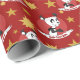 Papel de embrulho de Natal com ilustração de um cabeça de panda fofo com chapéu de Papai noel, em círculo vermelho, com estrelas amarelas, design de Natal para crianças, com texto personalizável modelo de nome ou mensagem; ilustrado por Radka Kavalcova