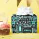 Design com um fecho legal de um conselho de circuito de computador a preto, branco e azul com um toque festivo. Esfregando papel com um design personalizável para você personalizar com seu próprio texto, imagens e ideias. Imagem criada usando uma fotografia original e técnicas digitais.