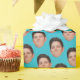 Rosto engraçado ou Cachorro Pet Foto de Papel Azul-Presente Havaiano — modelo simples. Carregue um png firmemente cortado de qualquer pessoa ou objeto com o plano de fundo removido (muitas aplicações de telefone público disponíveis podem fazer isso em um snap) e você pode embrulhar presentes no rosto do destinatário, no gato amado ou em qualquer objeto ou gráfico que você queira. Colocado sobre um fundo azul de cor azul de turquesa tropical aquamarina