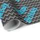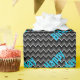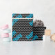 O feliz papel de embrulho de aniversário do garoto negro e azul. Zigzag preto e faixas de cinza com texto azul brilhante de "feliz aniversário".