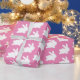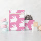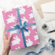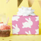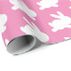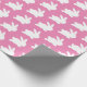 Um belo e elegante papel de embrulho para seus presentes. O design é um padrão de coelho branco em um fundo cor-de-rosa. Excelente de chás de fraldas ou páscoa.