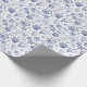 Papel de embrulho de presente azul e branco com conchas.