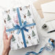 Papel de embrulho para presente na floresta russa de arborização de árvores veadas de madeira.