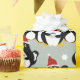 Pinguins em seus chapéus de Papai Noel tentam esgueirar uma bochecha, mas as crianças também querem. O fundo é stripey como pijamas com algumas estrelas noturnas. Personalize se quiser.
