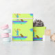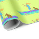 Papel de embrulho com presente de paddleboarding com desenho de menina em uma prancha com seu cachorro. O padrão é impresso sobre a cor charuto tropical. Embrulhe presentes para a filha adolescente ou amiga. Este papel divertido e esportivo vem em uma variedade de comprimentos.
