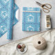 Características deste design a natividade com uma silhueta da família santamente no estábulo. Mary e Joseph olham sobre o bebê Jesus no comedoiro. O fundo é um azul bonito com os redemoinhos e as estrelas que cercam a natividade.