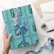 Características deste design a natividade com uma silhueta da família santamente no estábulo. Mary e Joseph olham sobre o bebê Jesus no comedoiro. O fundo é uma cerceta festiva com os redemoinhos e as estrelas que cercam a natividade.