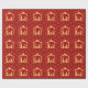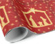 Características deste design a natividade com uma silhueta da família santamente no estábulo. Mary e Joseph olham sobre o bebê Jesus no comedoiro. O fundo é um vermelho festivo com os redemoinhos e as estrelas que cercam a natividade.