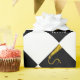 Embrulhamento de presente de graduação e decoração de festas com gratos, boné de formatura preto e design de tassel de ouro. Editar texto para adicionar o nome do formando do mais velho.