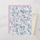 Folha de papel clássico, divertido e contemporâneo, com azul claro, rosa, verde pastel e padrão de arte terrazzo violeta violeta lavanda num fundo branco.