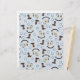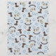 Cavalo de balanço doce, botas de cowboy e impressão de ferradura em papel azul, creme e livro de raspagem marrom.