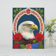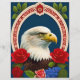 A imagem de uma águia careca, capturando as características majestosas do pássaro, com um toque artístico adicionado de elementos florais clássicos vermelho, branco e azul. Projetados com tecnologia de ponta, os elementos florais incluem rosas, folhas e flores.