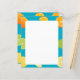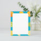 Este papel de carta de papel apresenta limões, limões e laranjas sobre um fundo azul lacrimogêneo.