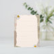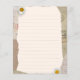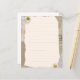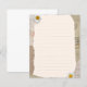 Linda página de notas de safra em cores bege e castanho, decorada com flores margaridas e selos de correio no fundo. Preencha as linhas com suas próprias notas ou qualquer outro texto.