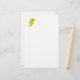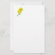 Folha de papel de papelaria mostrada em um papel branco básico com uma impressão de girassóis fofa.