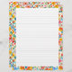 Este papel de papelaria apresenta um vibrante design floral de cor d'água, em negrito, com folhas revestidas. Ideal para registro, reserva e escrevendo de cartas.
