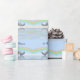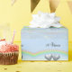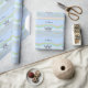 Bonito papel azul-claro embrulhando com meu design de dois corações de estanho flutuando na água sob um arco-íris. O texto personalizável diz "10 anos".