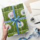 Feche uma nota de cem dólares em uma bola de golfe em grama verde