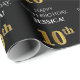 Este luxuoso e elegante design de papel embrulhado com tema de aniversário exibe a mensagem "FELIZ 10º ANIVERSÁRIO", um nome editável, e o número de aniversário "10º" com um padrão de aparência inspirado em falsa/imitação de ouro. O fundo é preto colorido. Um papel de enrolar como este pode ser usado no embrulho de presentes/presentes que estão sendo dados em comemoração do décimo aniversário de alguém. [~Z0000454]