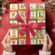 Este adorável papel de embrulho de Natal apresenta 1 papagaio em uma pera, 2 pombas de tartaruga, 3 galinhas francesas, 4 chamando pássaros, 5 anéis de ouro, 6 gansos por postura, 7 nadadores, 8 moças por ordenha, 9 senhoras dançando, 10 lordes saltando, 11 pípedes e 12 bateristas batendo em cada uma em uma moldura decorativa. Perfeito para embrulhar esses presentes de férias.