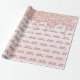 Estilo elegante, clássico, glamouroso e feminino embrulhando papel para a 18ª festa de aniversário. Um fundo cinza-rosado, rosa de gradiente dourado decorado com gotas. Modelo de nome e idade 18. Escrito em estilo manuscrito com rosa dourado escuro.