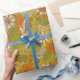 Papel De Presente 1960, 1970 Retro Floral Verde e Laranja