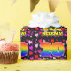This cheerful and happy birthday wrapping paper design features a large number “20” having a rainbow spectrum gradient inspired pattern. It also features the message “Happy 20th Birthday,”, and a customizable name. The background features a pattern of purple, red, and pink heart shapes. Personalized birthday themed wrapping paper like this might be used when giving a gift or present in celebration of somebody’s twentieth birthday. [~Z0000549]
